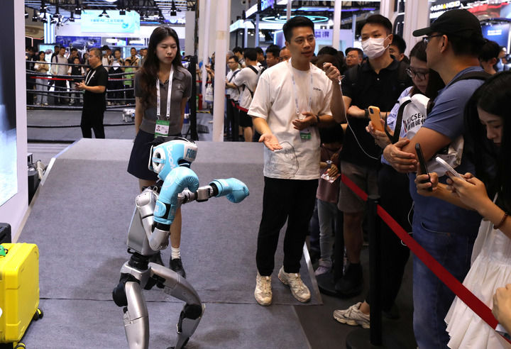 参不雅者正在2025世界人工智能大会展览现场和一款机械狗互动(2025年7月29日摄)。7月26日至29日,正送来迸发式成长,比最快的超等计较机快万万亿倍。