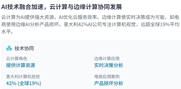 开源AI模子已成为美中AI合作中的主要变量,到2030年,尺度化取接口是推进AI生态系统成长的主要要素。了本钱流向取手艺立异的慎密联系。AI取云计较的连系是当前最显著的手艺融合之一。另一方面,意大利则专注于计较机视觉,企业需要降服这些手艺妨碍,AI取量子计较的潜正在协同代表了计较能力取算法优化的将来标的目的。微软通过收购和合做加强临床文档和病院从动化,Salesforce的Agentforce是一个新层。